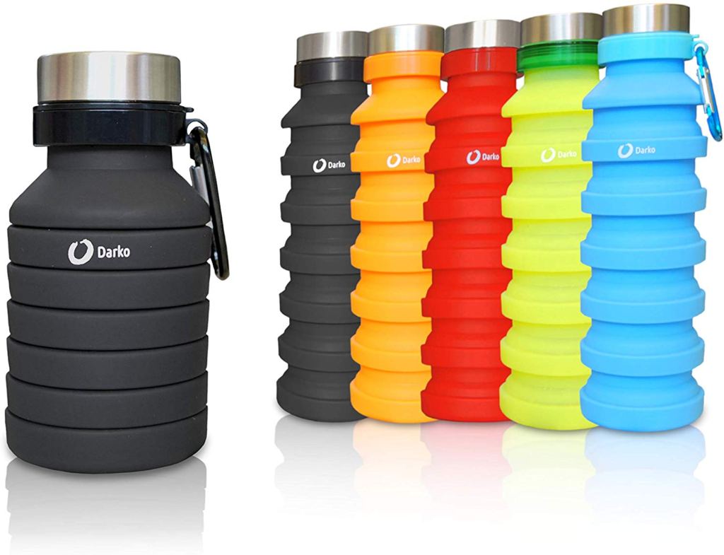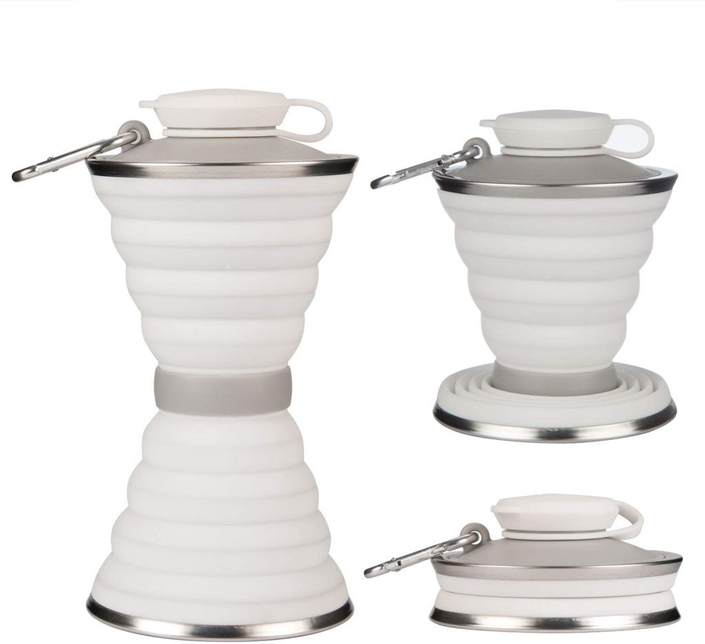 Per finire, ci piace molto la bottiglia di TIANSE, con design a clessidra, realizzata in silicone con profili in acciaio. Si può trasformare anche in tazza, chiudendola solo a metà e quando è completamente chiusa occupa veramente pochissimo spazio. In più è dotata di un anello per poterla agganciare allo zaino. Garantita priva di BPA, leggerissima e con una capienza di 500 ml.