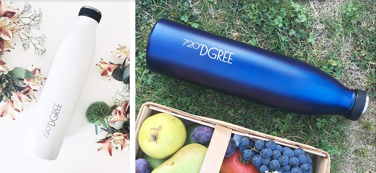 Se preferisci la praticità dell’acciaio inox, ecco l’elegante bottiglia di 720°Dgree. L’azienda tedesca propone questa gamma di bottiglie (parte di una collezione più ampia che prevede anche altre linee) disponibili in tanti colori diversi e in diverse misure, da 500ml,, 750ml e 1L. Si tratta di una borraccia termica, che assicura quindi di mantenere a lungo la temperatura delle bevande. Tappo anch’esso in acciaio, design minimal ma molto elegante.