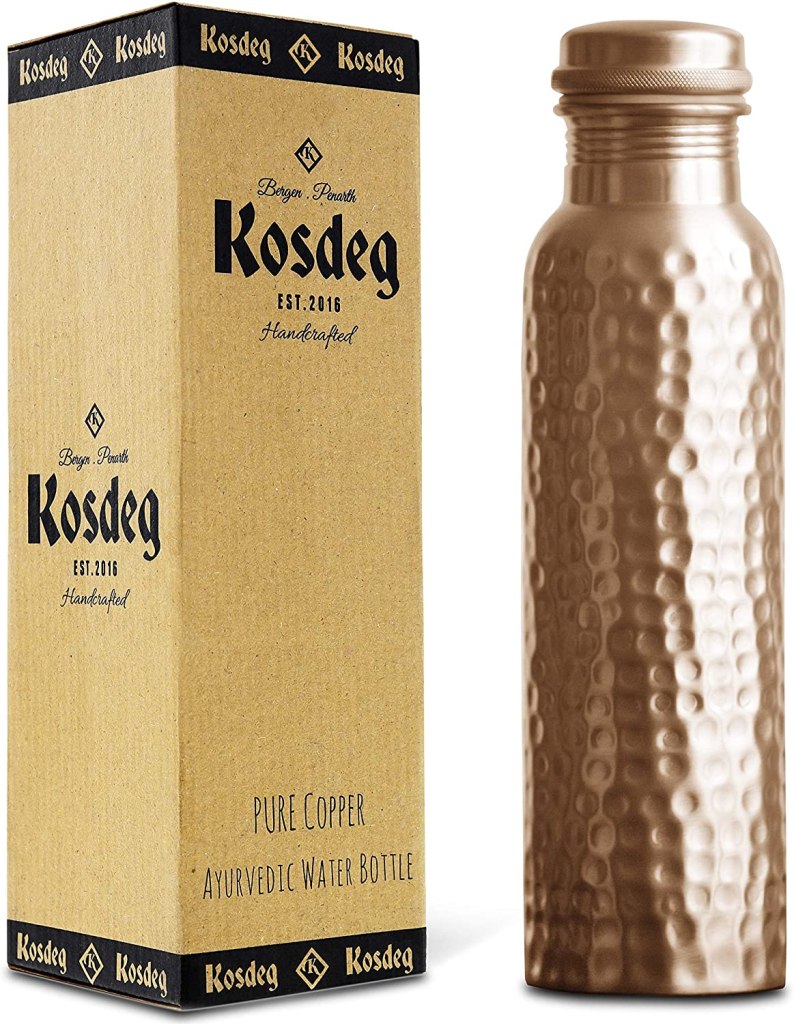 La bottiglia di Kosdeg in rame martellato (che abbiamo Scelto per la foto di copertina di questo articolo), oltre ad essere veramente elegante e un’ottima idea regalo, ha una capienza veramente generosa: 1 Litro! Bottiglia realizzata in rame puro al 100%, con un’imboccatura larga per facilitare la pulizia.