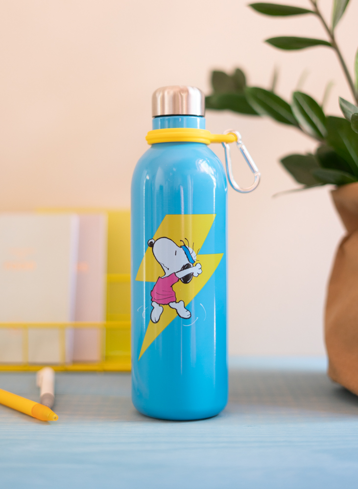 Spesso, nei miei articoli, vi ho parlato di borracce da portare a scuola. Queste due qui sotto, grazie all’anello in silicone e al pratico moschettone, secondo me sono perfette. La prima ci porta nel colorato mondo di Snoopy e dei Peanuts, mentre la seconda è una romanticissima borraccia con immagini e frasi tratte dal Piccolo Principe (con un bellissimo tappo in acciaio color oro). Sono super indicate per i bambini, ma, grazie alla loro capienza di 500ml anche per gli adulti che amano portare con sé un tocco di allegria.