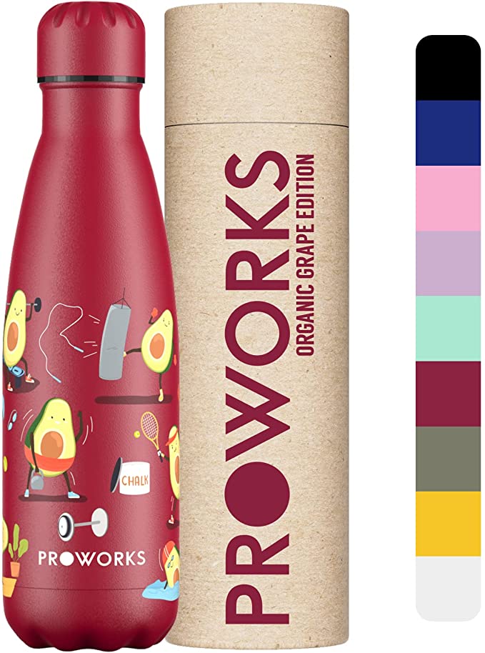 Tra le bottiglie riutilizzabili più irresistibili della stagione, ecco quelle di Proworks. Dal design più tradizionale dal punto di vista strutturale, sono disponibili in una gamma di colori, misure e fantasie davvero deliziose. Qui di sotto vi presento 3 modelli, ma ce ne sono davvero tantissimi. La mia preferita? Forse quella con i pupazzetti a forma di avocado che si allenano in palestra 🙂
